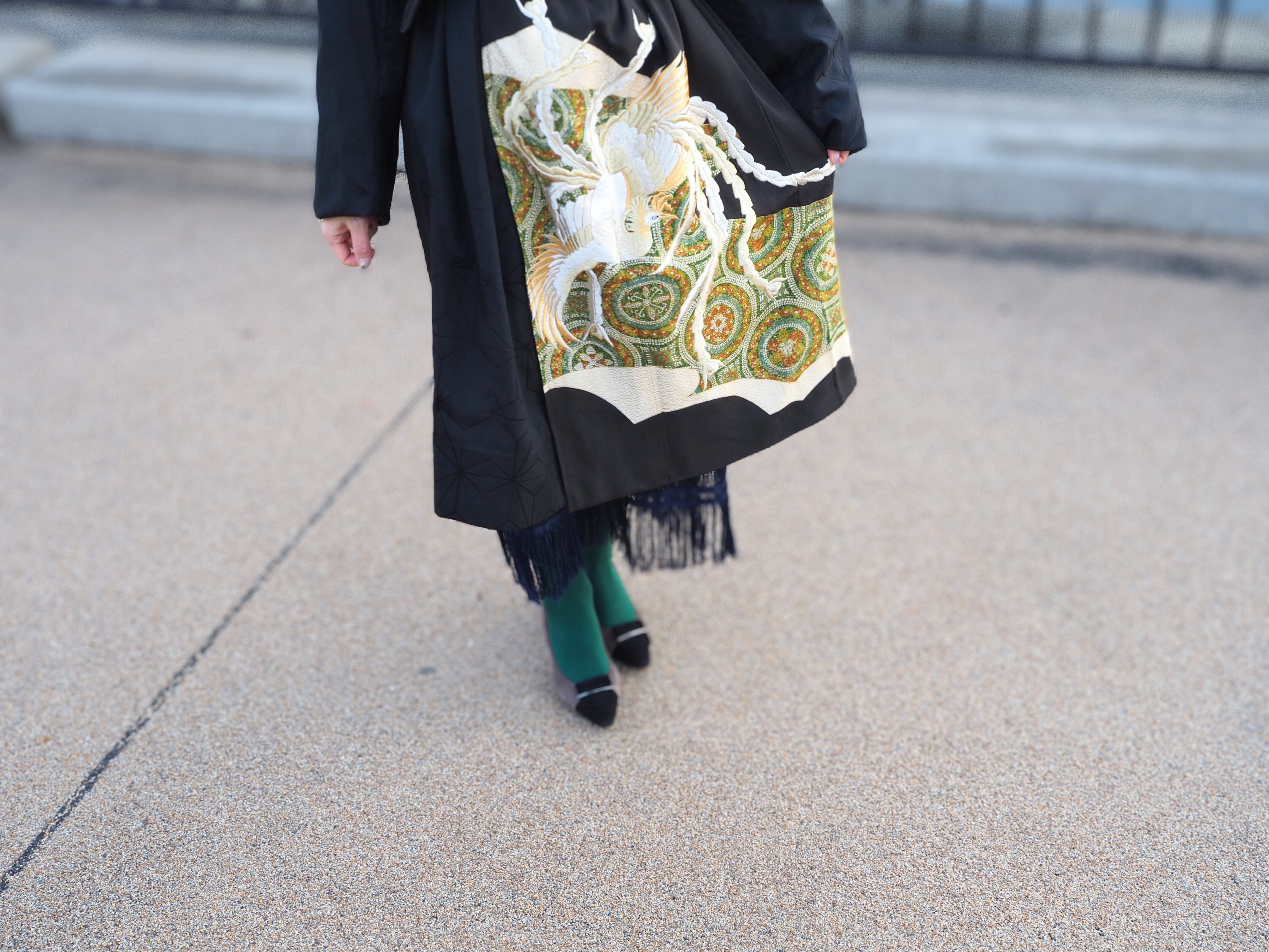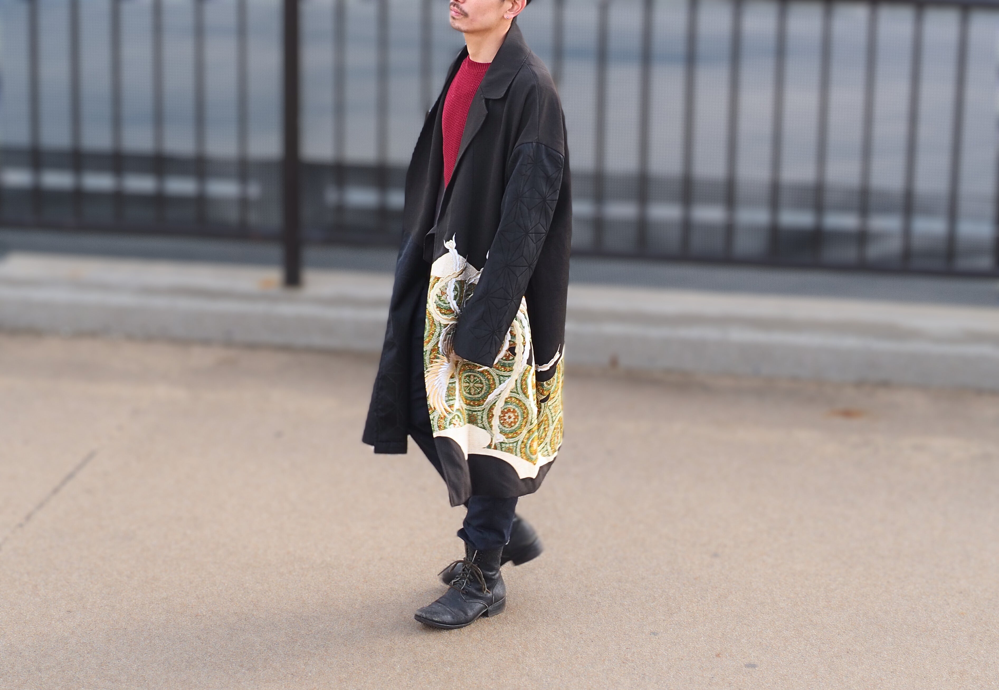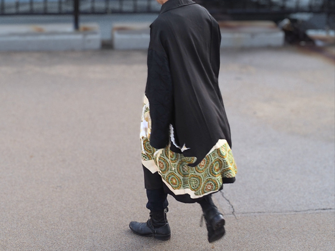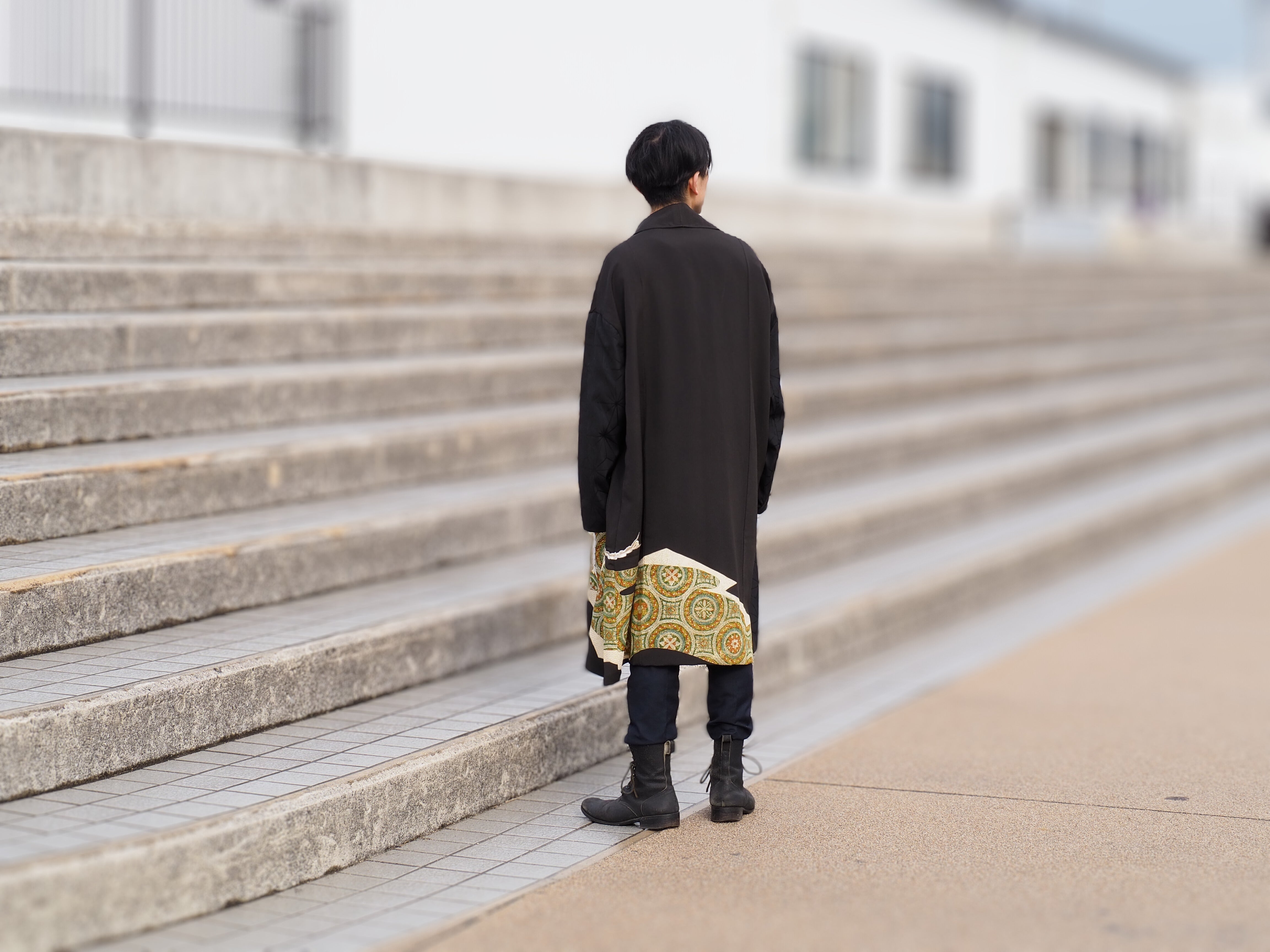 KIMONO JACKETは、2枚の着物から制作しています。美しい刺繍の施された黒留袖、全体に麻模様の入った着物、もともと柄と柄を重ねる想定で製作されている着物生地は、2種類を対にしても非常にバランスの良い仕上がりになります。着物の持ち込みも、弊社在庫からもご提案させていただけます。