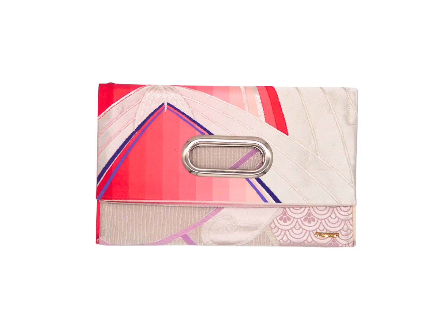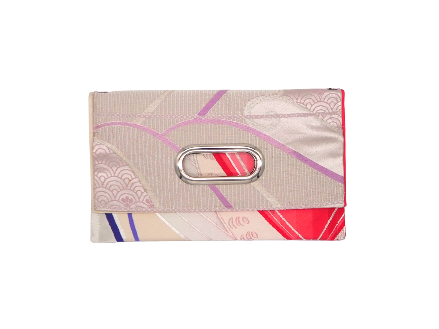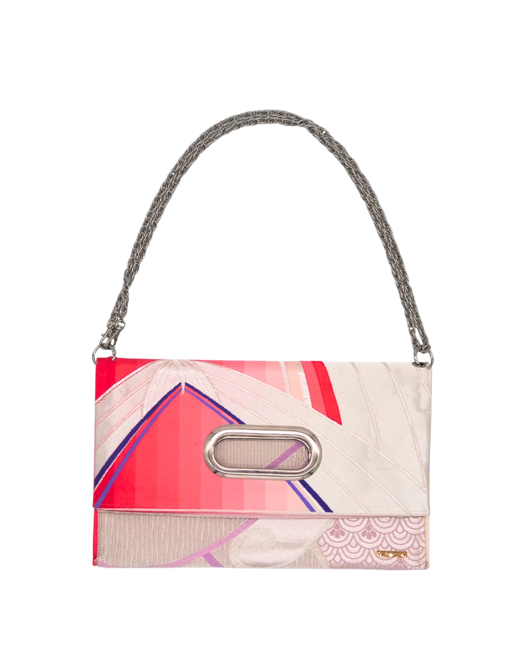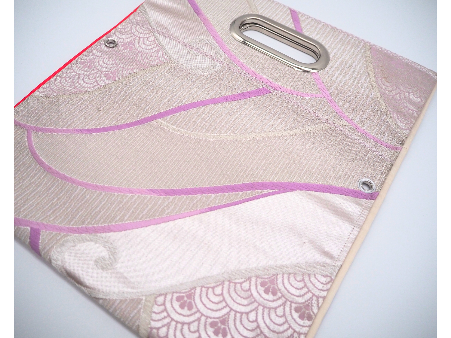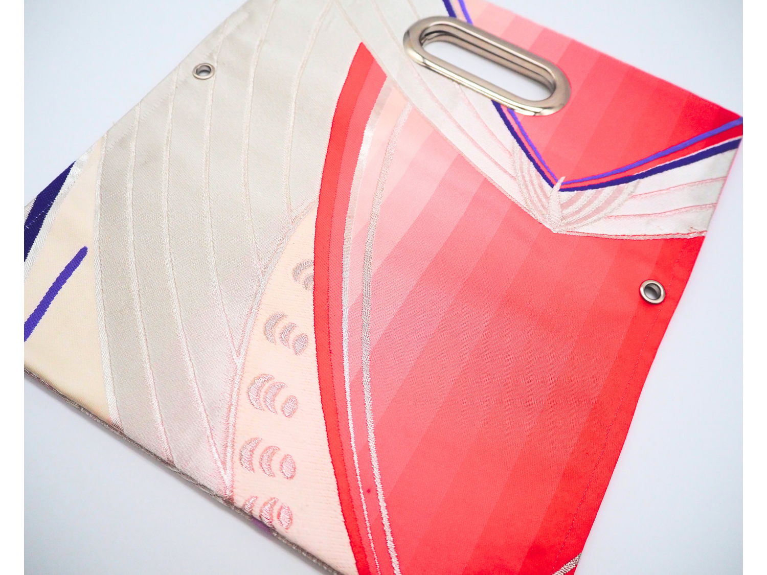 このバッグはたまたま柄の帯を合わせて使っております、8通りの方が持ち可能です。 パーティーを彩る主役級バッグとして、様々なシーンで活躍します。着物の帯で作られているので、使っている場所によって柄が異なり、全てのバッグが一点ものとなっております。